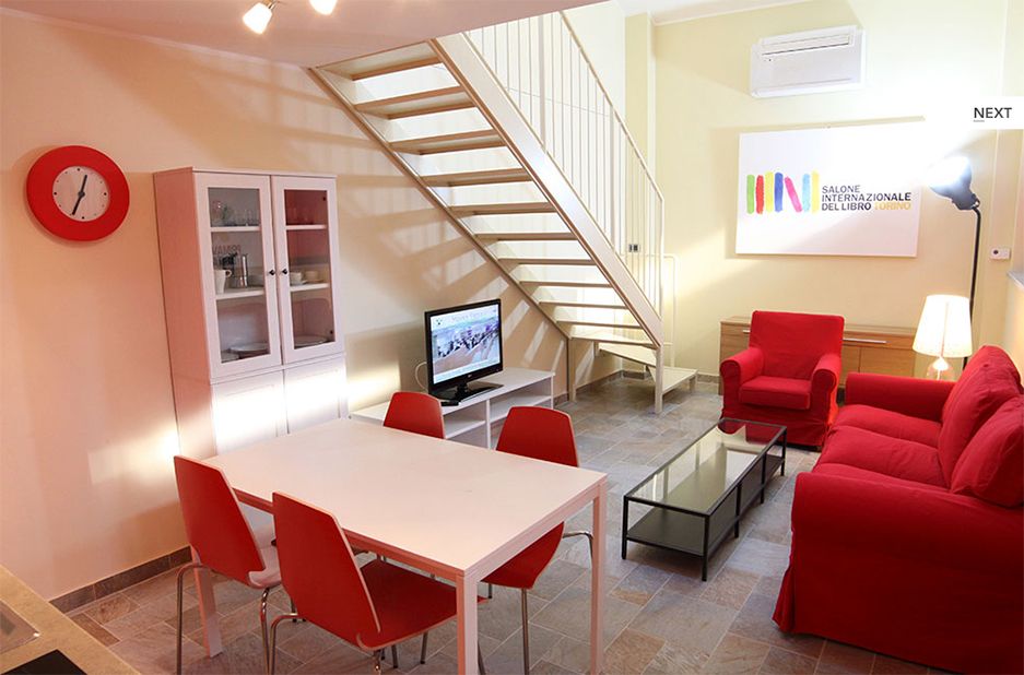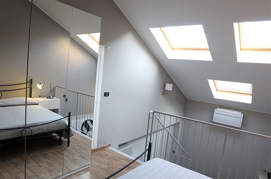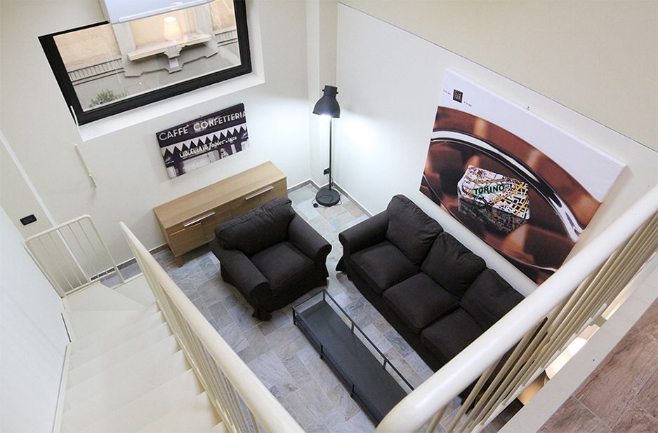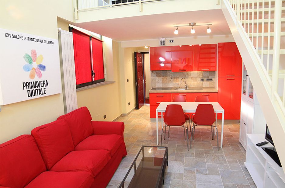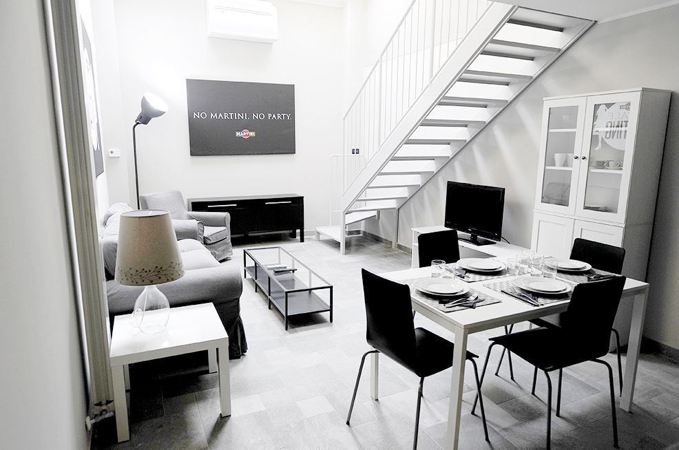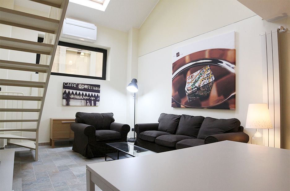 Questo LOFT, più spazioso degli altri, è disposto su due piani. E' composto da un ingresso dal quale si accede alla zona giorno suddivisa in zona salotto e zona pranzo, con tavolo per 4 persone e da una cucina completa di tutti gli elettrodomestici, frigorifero, lavapiatti, forno a microonde, piano cottura a induzione.