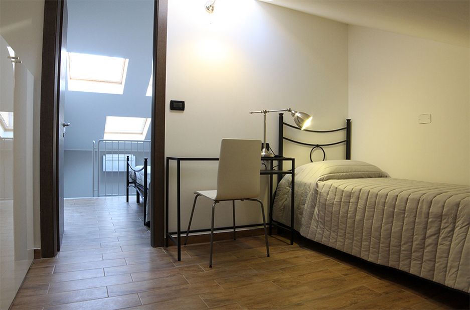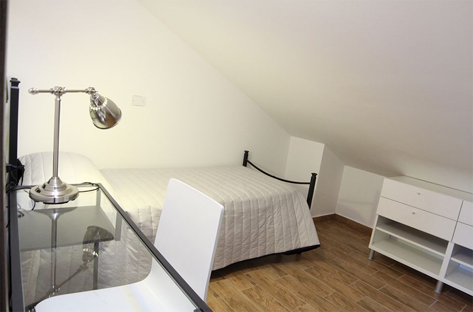 Da una scala interna si accede al piano superiore dove è situata la camera da letto matrimoniale completa di capiente armadio, comodini e cassettone. Adiacente troverete una camera da letto singola con armadiature e scrittoio.